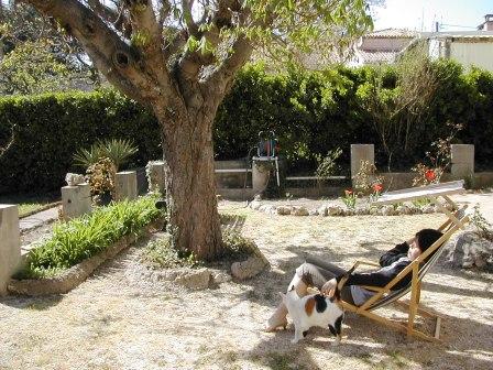 家の前の縁側のようなところで長江からの風に吹かれて夕涼み、