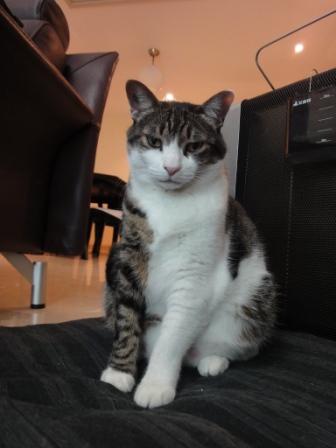 2/8の夜ごはん待ちで座っている時に、右前足を浮かせていることに気がついた。